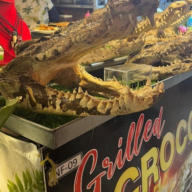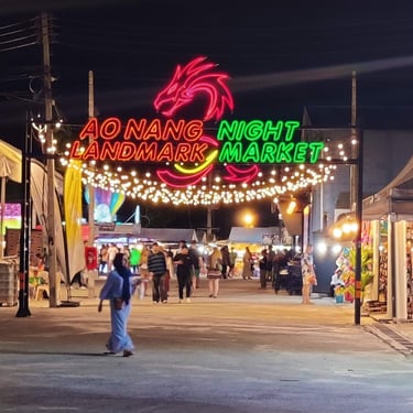 Om dat te vieren nemen we een tuktuk naar de Ao Nang Night Market. En zoals de naam al doet vermoeden: het is een kleurrijke, geurige, levendige avondmarkt vol eten, muziek en kleine verrassingen.
