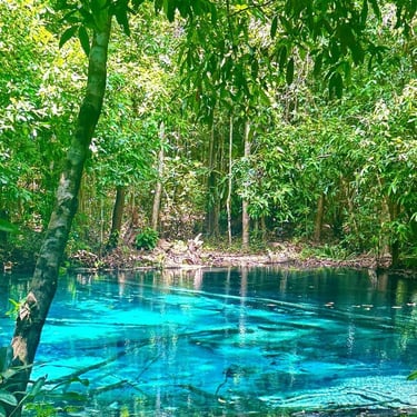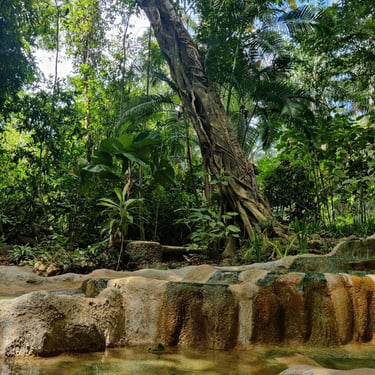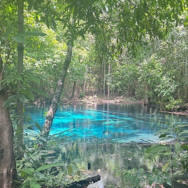 Na een korte rit komen we aan bij de Emerald Pool, gelegen in een prachtige omgeving. Het water is kristalhelder, omgeven door tropisch groen. Alleen... het was er best druk, waardoor het een beetje aanvoelde als een openluchtzwembad. Toch is het moeilijk om niet onder de indruk te zijn.