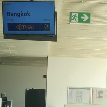 Half negen ’s ochtends, en we racen naar de luchthaven voor onze vlucht om 13:30 naar Bangkok. Na eindeloos wachten en schuifelen, stijgt ons vliegtuig precies op tijd op – score! Elf lange, krappe uren later landen we in Bangkok, haasten we naar de andere terminal en hoppen we in onze aansluitende vlucht naar Krabi. Na een uurtje vliegen stappen we uit in Krabi, waar een zwoele 30 graden ons verwelkomt – héérlijk na 15 uur reizen!