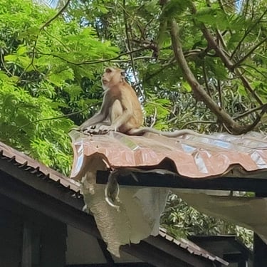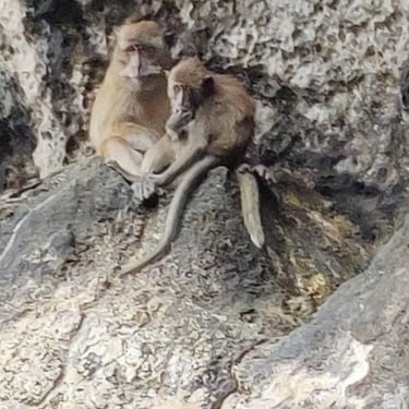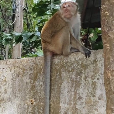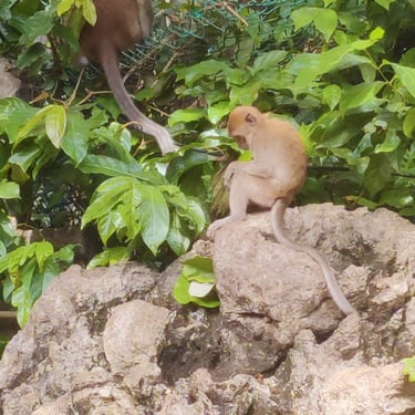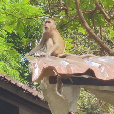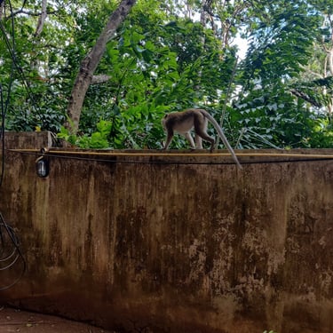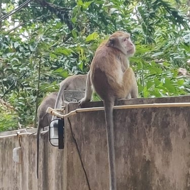 Gelukkig was er beneden op het domein ook van alles te zien, waaronder een hele bende brutale apen. Ze leken wel een stel pubers die kattenkwaad uithaalden – terecht bijgenaamd de "Monkey Maffia". Nadine en Caithlyn waren wél bijna helemaal naar boven gegaan, mét de camera, dus helaas geen eigen foto’s van het apenspektakel.