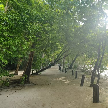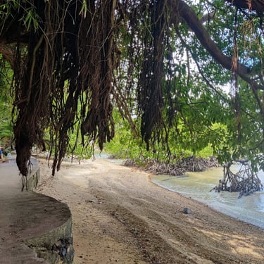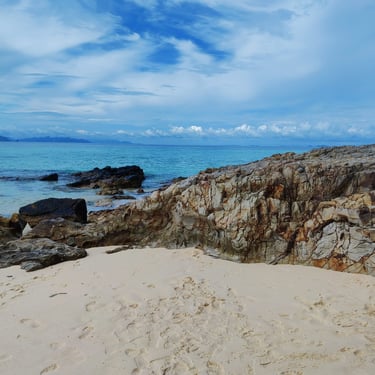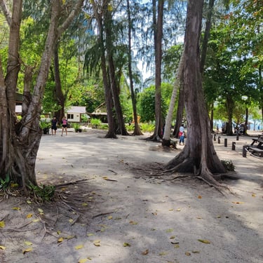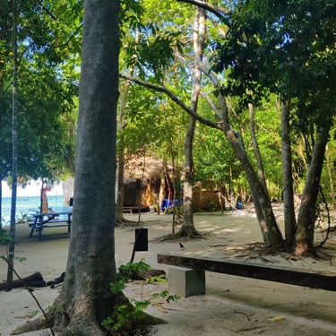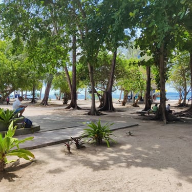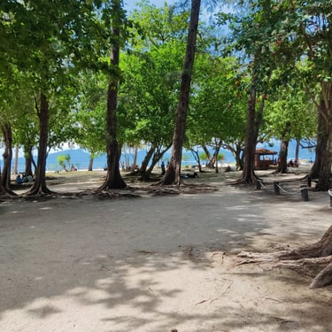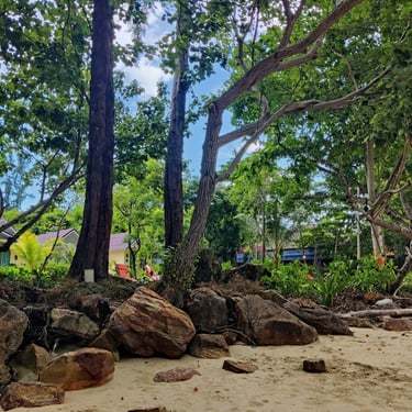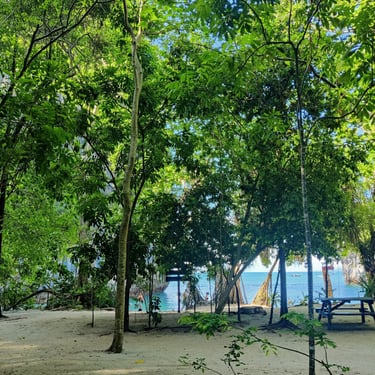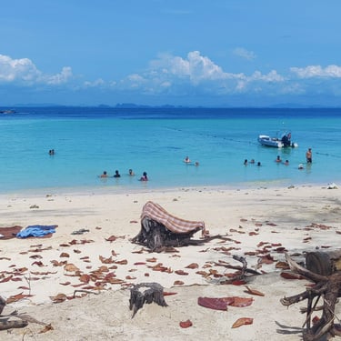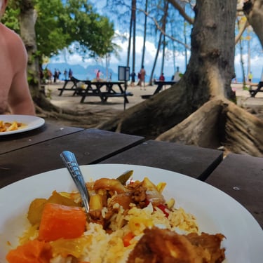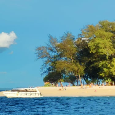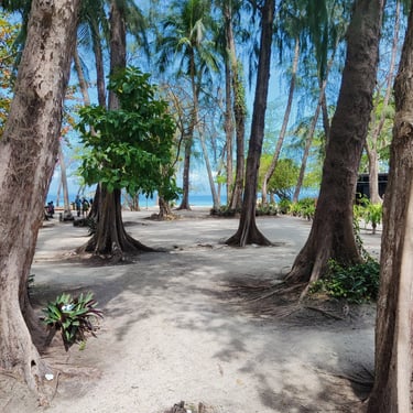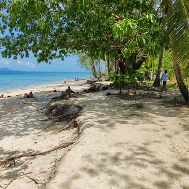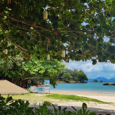 Hier geen getoeter, geen overvolle straten. Alleen strand, stilte, palmbomen en een horizon vol eilandjes die eruitzien alsof ze door een kunstenaar op het doek zijn gezet. Pure zen.