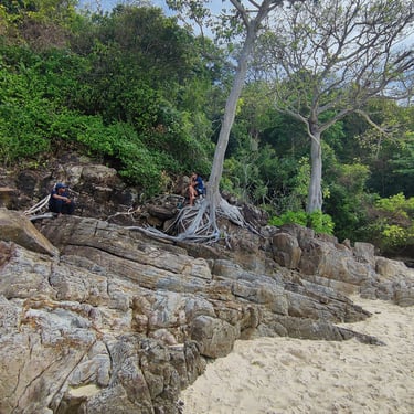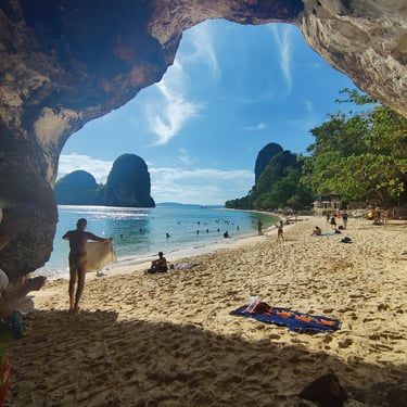We varen opnieuw langs Railay Beach, waar we nog eens stoppen bij de beroemde grot met de collectie… piemels (jawel, die van dag 2 — een plek die je niet vergeet 😄).