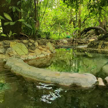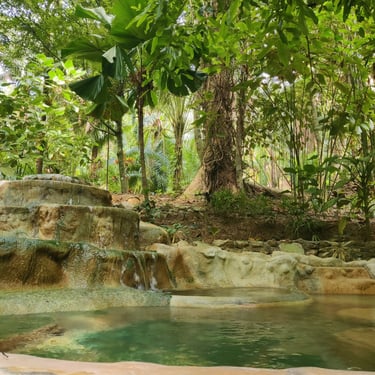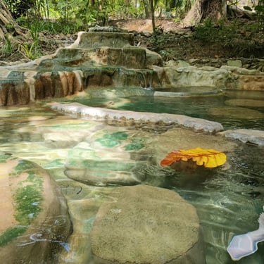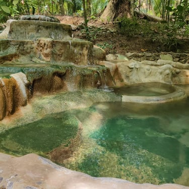 De Hot Water Springs zijn – zoals de naam al doet vermoeden – warme waterbronnen midden in het bos. Rond de bron heeft een ondernemende Thai een aantal kleine baden gebouwd, een soort natuurlijke jacuzzi’s, waarin je heerlijk kunt opwarmen of afkoelen. Echt zalig om in te zitten, omringd door jungle en vogelgeluiden.
