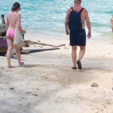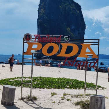 We varen verder langs nog meer idyllische eilandjes, elk mooier dan het vorige, tot we lunchen op Poda Island. Stel je een tropisch paradijs voor… maak het tien keer mooier… en voeg er dan nog 200 toeristen aan toe. Voilà, je bent op Poda.