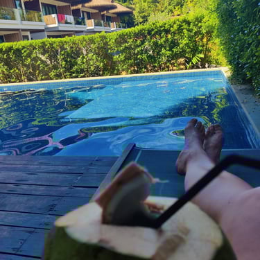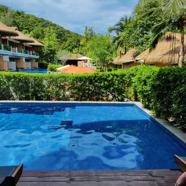 We brengen de voormiddag relaxed door aan ons terras en het zwembad, met wat gezaag, gezever en dagdromerij over hoe Thailand onze vaste uitvalsbasis zou moeten worden voor toekomstige vakanties. Alles klopt hier gewoon.