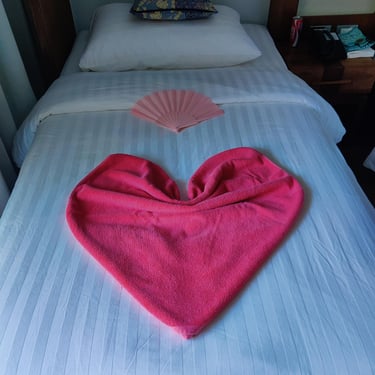 We komen aan in wat alleen maar omschreven kan worden als het decor van een postkaart. De kamer is meteen klaar – hoera! – dus we gooien de koffers op bed en trekken onze slippers aan om de omgeving te verkennen.