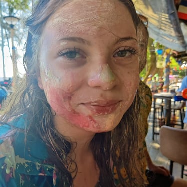 Tien dagen zon, een gevoelig huidje en geen schaduw = zonneschade. We springen snel een apotheek binnen voor verbandjes en zalfjes, zodat ze zonder probleem de rest van de dag door kan.
