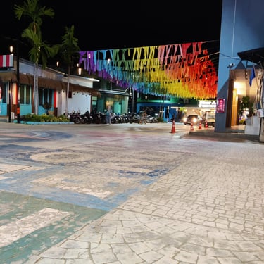 Het resort ligt centraal in de stad, maar heeft een verrassend kleine ingang. Nadat we ons hebben aangemeld aan de balie (de frontdesk, niet het eiland 😄), blijkt dat we nog een paar uur moeten wachten voordat we kunnen inchecken op onze kamer. Gelukkig mogen we al gebruik maken van de faciliteiten. Dus na een snelle douche en frisse kleren besluiten we alvast de stad te gaan verkennen.