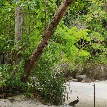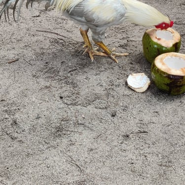 Opmerkelijk: op Poda zijn er wél kippen — en ze eten kokosnoot! Serieus. Volgende keer stel ik voor dat ze deze kippen meteen gebruiken voor de lunch, lekker vers.