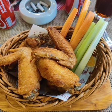 Ik bestel iets dat omschreven wordt als "chicken fingers" — klinkt als een licht hapje, toch? Wat ik krijg is eerder een kiplekker beest in crunchy jasje. Geen voorgerecht, maar een hele maaltijd op zich. Lekker? Absoluut. Te veel? Ook ja.