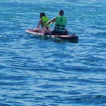 Geen peddleboard voor mij, nee hoor. Ik worstel me stoer, zij het puffend, tot boven het koraal. Daar ontdek ik dat Nadine ondertussen een persoonlijke snorkelinstructeur heeft ingepalmd. Terwijl ik vecht tegen de golven en mijn duikmasker, wordt zij vlotjes rondgeleid langs de mooiste plekjes.