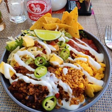 We vragen het aan een bekende dame die ons eerder de speedboot naar Hong Island regelde, en zij stuurt ons richting een groot restaurant. En tja… als we daar dan toch zijn, waarom geen pauze inlassen in een Mexicaans restaurant?