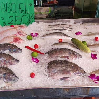 Eten doen we vanavond op het resort zelf, want in de buurt zijn geen kraampjes te vinden.