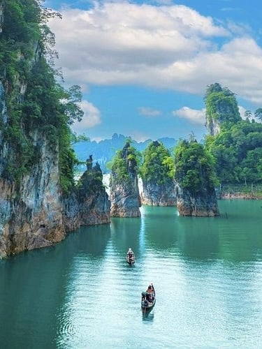 Daarna vliegen we door richting Krabi, maar… we gaan niet rechtstreeks naar het strand. Nee, we maken eerst een tussenstop in Khao Sok. Voor de taalkundigen onder ons: Khao Sok is oud-Thais voor "Koude Voeten", denk ik. Het is een nationaal park dat bekend staat als een van de oudste oerwouden ter wereld. En wat doe je in zo’n oerwoud? Juist ja. Slapen in een boomhut.